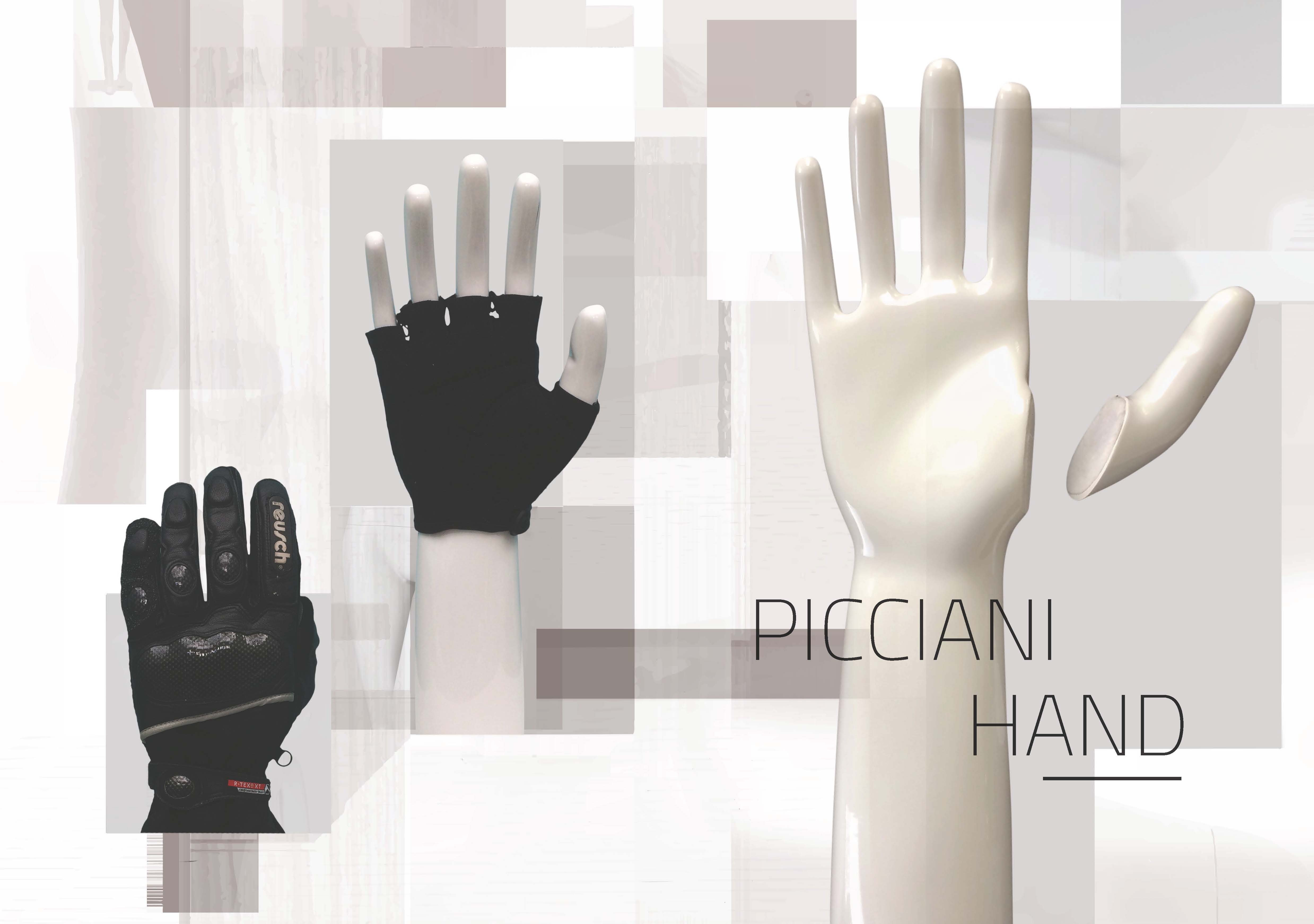 Die Picciani Hand ist die erste Präsentationshand für Handschuhe, die mit ihrem patentierten Daumen-Magnet-Klick-System eine besonders einfache Handhabung und ein perfektes Präsentationsergebnis bietet. Dank dieser innovativen Technik lassen sich Handschuhe schnell anbringen und optimal in Szene setzen – ideal für POS-Displays, Showrooms und Messeauftritte.